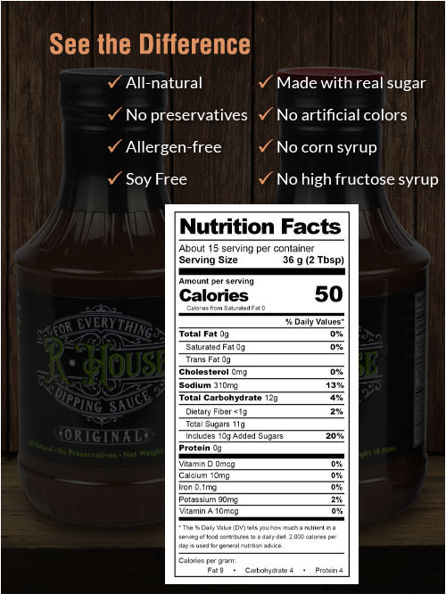 R•House dipping sauces savory flavor comes from only the best all-natural ingredients and contain no preservatives. It truly is One Sauce to Rule Them All!